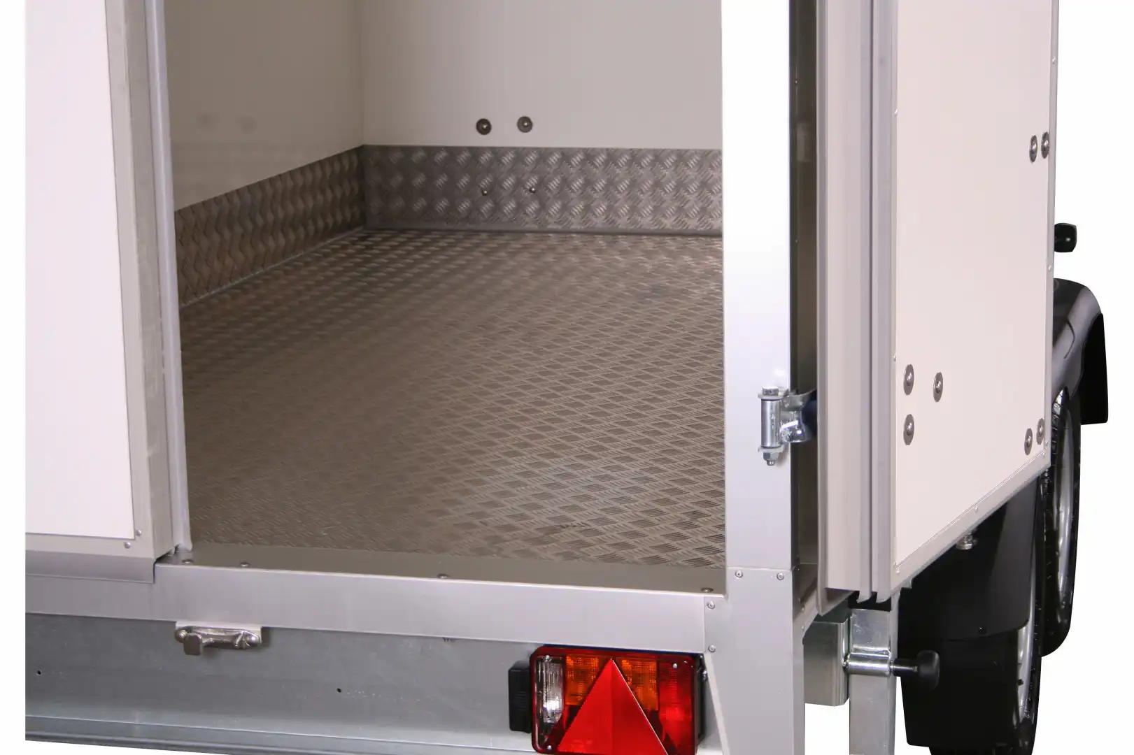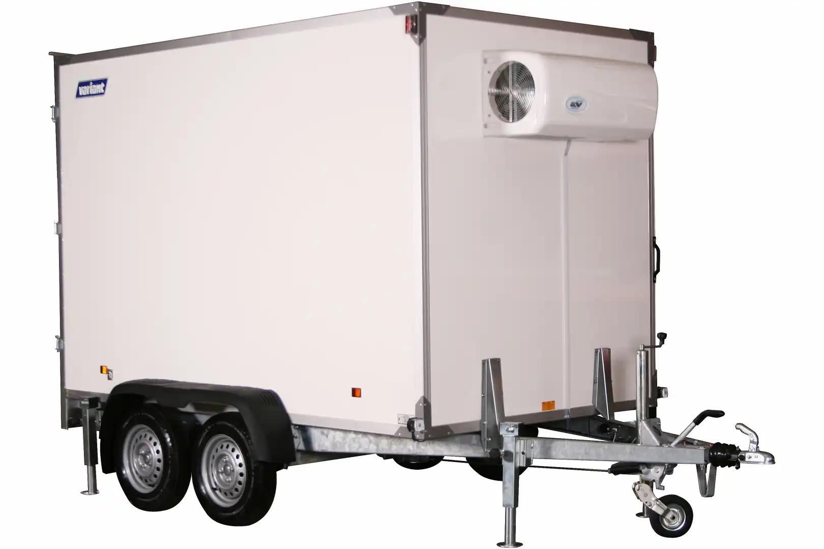 Køletrailer med en Totalvægt på 2500/3000kg, med stor lasteevne gør det muligt at transportere tunge fødevarer som blandt andet drikkevarer som vejer meget. Traileren kan lejes med reolsystem (se tilbehør)